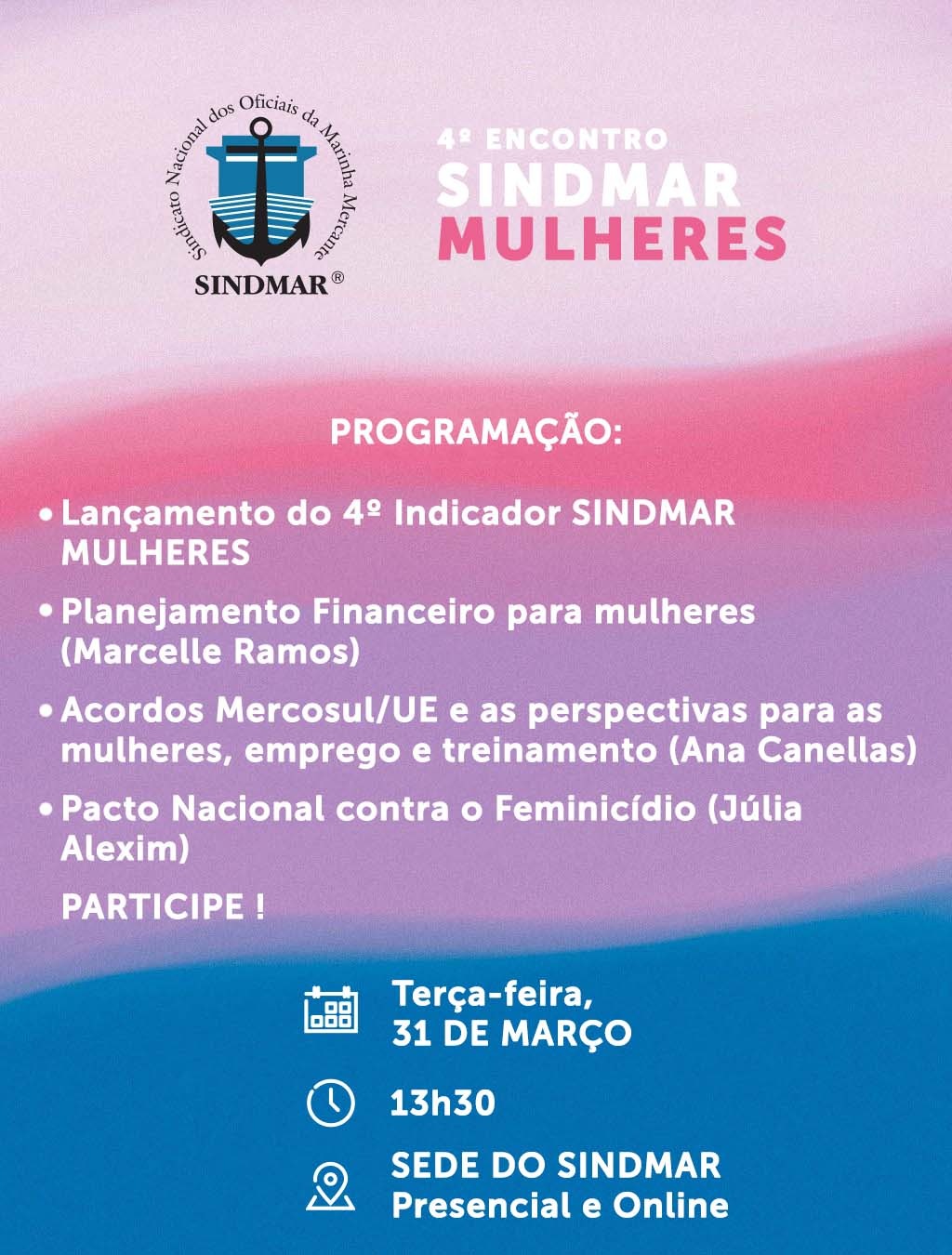 - Lançamento do 4º Indicador Sindmar Mulheres;